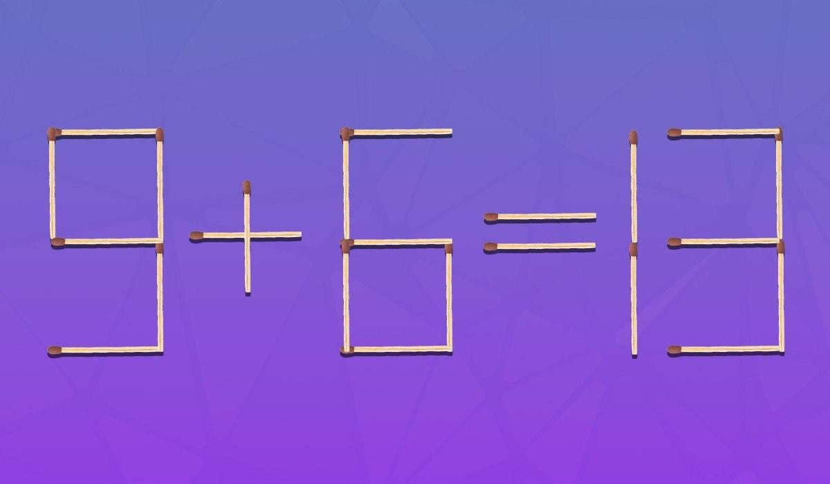 De puzzel hieronder is ontworpen voor mensen met uitzonderlijke concentratievaardigheden. In de afbeelding zie je de gelijkheid “9+6=13”, die wiskundig fout is. Je moet het corrigeren.