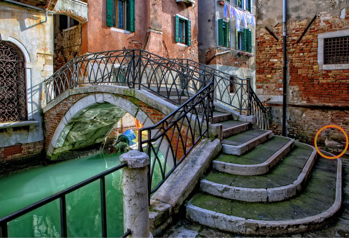 Zoek een eend in een foto in 10 seconden/ unsplash.com Als je de eend op de foto niet kunt vinden, is hier een kleine hint – kijk goed naar het gebied onderaan de trap bij de rechter rand van de foto.