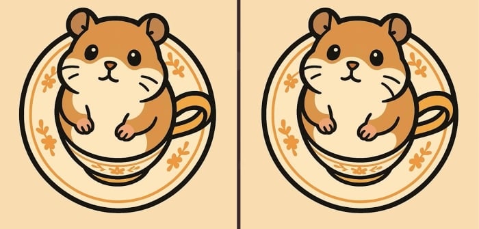Ben je klaar voor de volgende uitdaging? Kijk eens goed naar de twee afbeeldingen van een hamster die in een beker zit. Op het eerste gezicht lijken ze identiek, maar er zijn 3 kleine verschillen. Denk je dat je ze allemaal kunt vinden in 51 seconden? Probeer het en test je gezichtsvermogen!