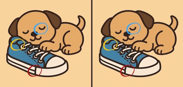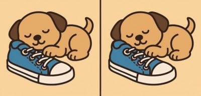 Ben je klaar voor de volgende uitdaging? Kijk eens goed naar de twee afbeeldingen van een puppy die op een schoen slaapt. Op het eerste gezicht zien ze er misschien hetzelfde uit, maar er zijn 3 kleine verschillen. Denk je dat je ze allemaal kunt vinden in 51 seconden? Probeer het en test je gezichtsscherpte!